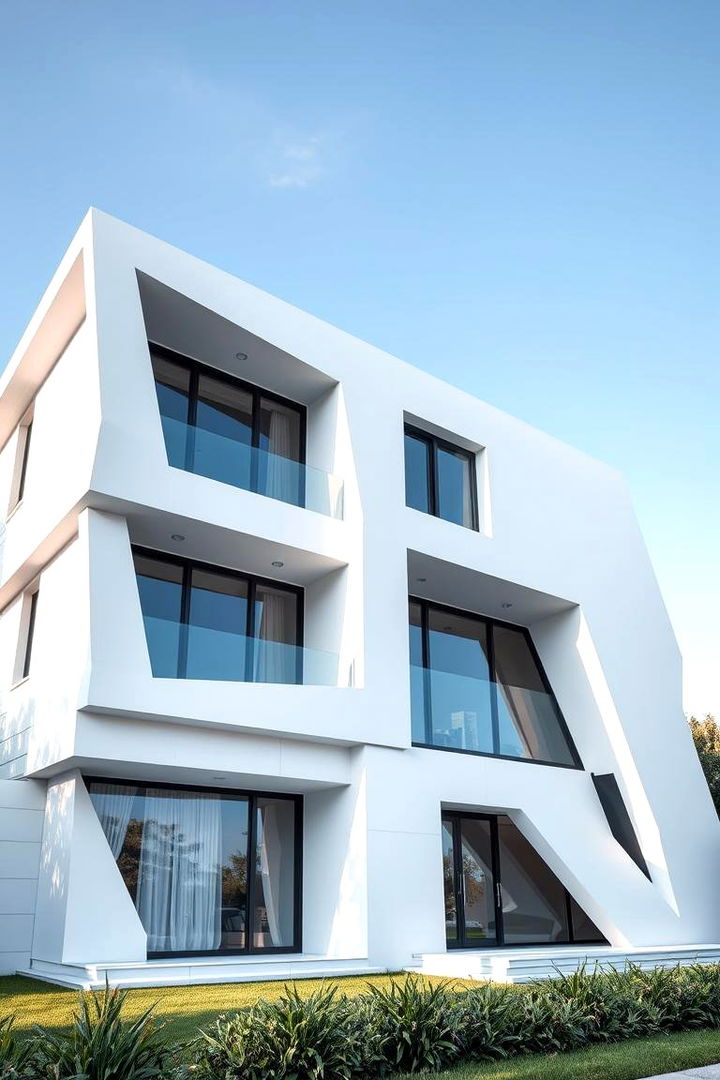 Embracing futuristic geometry, this design approaches the home’s exterior as an abstract sculpture. Angular lines, unconventional shapes, and a bold interplay of facets deliver a striking and avant-garde look. The integration of mathematical precision with creative freedom produces a structure that is both daring and refined. Homeowners experience a unique sense of innovation and cutting-edge style while maintaining practicality through refined materials. This approach emphasizes the beauty of modern form and function, making every angle a testament to creative boldness, and turning the façade into a dynamic celebration of architecture’s future potential.