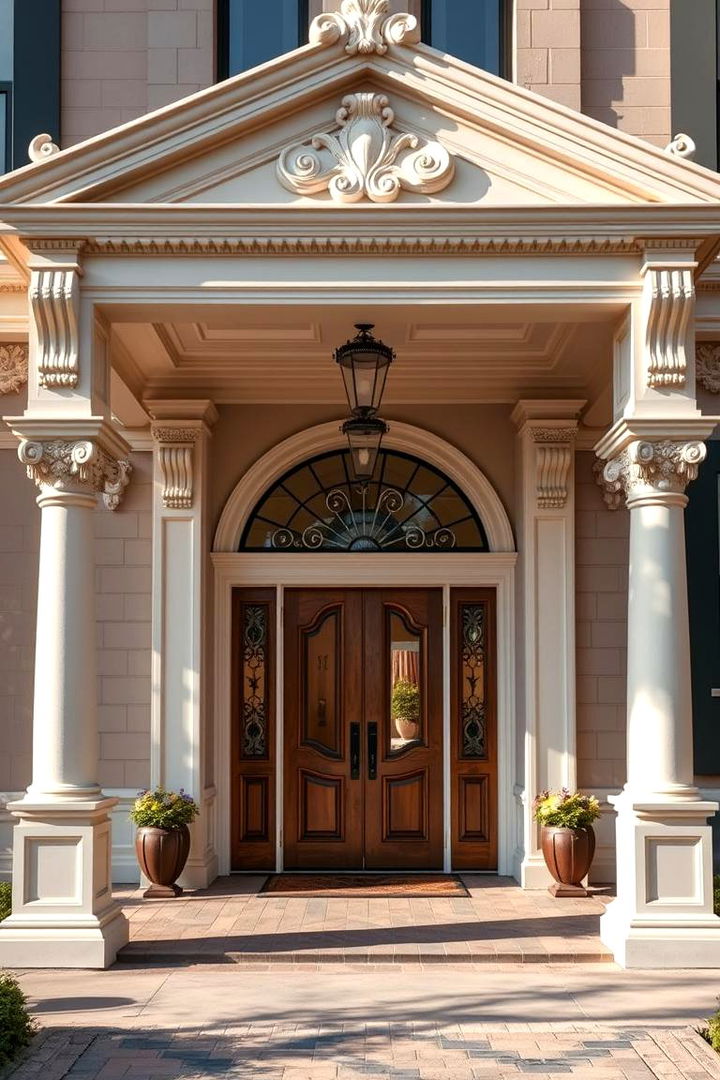 A grand statement entryway serves as the soul of a home’s exterior, with ornate porticos and bold architectural features welcoming guests. This design emphasizes an inviting and secure first impression, combining intricate detailing with durable materials. The fusion of classical proportions and modern reinventions endows the entry with both elegance and strength. Homeowners benefit from enhanced security and a uniquely personal style that sets the tone for the entire property. By elevating the entrance, this design approach ensures that every arrival is greeted by an aura of sophistication and character that stands the test of time.