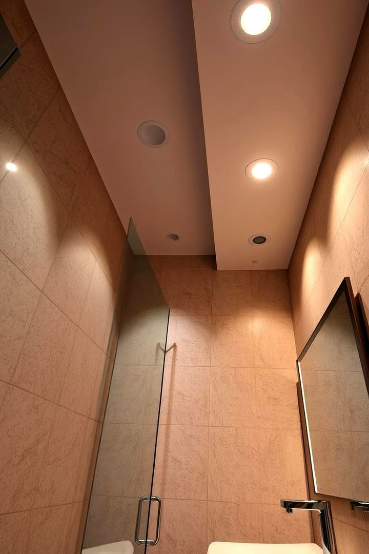 At the heart of a well-planned apartment bathroom lies integrated lighting designs that create a soothing ambiance. Thoughtfully placed LED lights and recessed fixtures provide both functionality and a dramatic effect, enhancing every design element. This approach showcases the harmonious balance between practicality and aesthetics by eliminating harsh shadows while highlighting textures and colors. With layers of soft, ambient illumination combined with focused task lighting, the space feels inviting and expertly curated. Such designs not only enhance visibility but also elevate the overall mood, lending the bathroom an air of modern refinement and sophisticated charm.