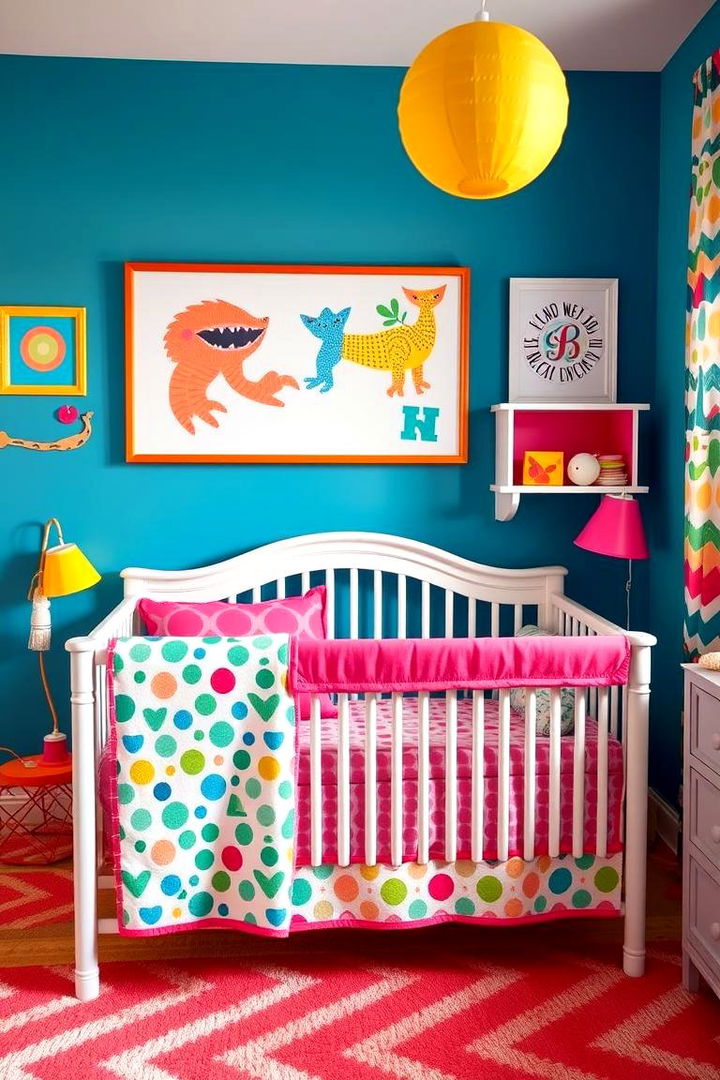 In contrast to softer themes, a bold and bright nursery embraces vibrant colors and energetic patterns to create a lively atmosphere. Dynamic hues combined with playful designs energize the room, inspiring creativity and joyful interaction. Striking wall art and smart decor choices add a burst of color, while balanced accents maintain a sense of harmony. This daring concept transforms the space into an inspiring canvas that fuels imaginative play alongside practical comfort. Careful integration of vivid details with warm furnishings creates an environment that feels both exciting and secure, ensuring every moment is filled with visual delight and confident energy.