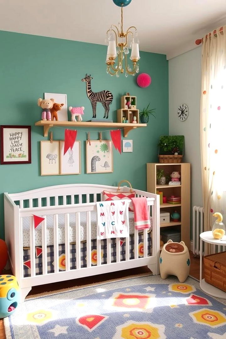 A playful burst of creativity defines the imaginative playful nursery, where color, spontaneity, and fun come together. Quirky artwork, interactive decor, and vibrant accents stimulate early developmental milestones while inviting joyous exploration. Energetic patterns and unconventional details spark innovation and lively engagement. The room becomes a dynamic space that nurtures a child’s sense of adventure and creative expression. This theme seamlessly balances energetic visuals with comfort, encouraging imaginative play and delightful interactions. The space is designed to be both functional and inspiring, fueling creative dreams with every thoughtfully crafted element.