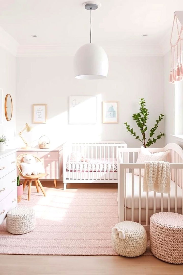 A gentle wave of soft pastel hues sets the stage for a serene nursery that radiates calm and warmth. This style embraces subtle pinks, mint greens, and delicate lavenders to create a soothing environment, perfect for a baby girl. The light color palette enhances natural light and expands the room, inviting relaxation and peaceful sleep. Thoughtfully chosen decor and gentle textures layer comfort and charm throughout the space. This calming design encourages tender moments and sweet dreams while showcasing a refined, minimalist aesthetic that cultivates serenity and balance in everyday life.