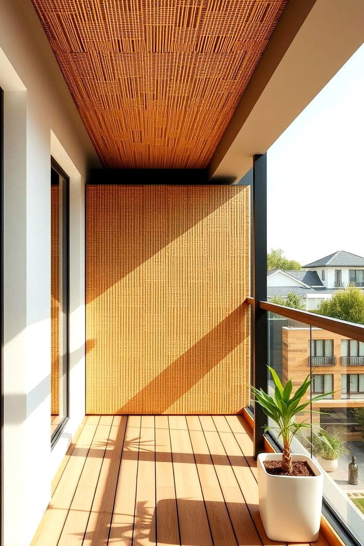 Consider bamboo screening panels to infuse your balcony with a natural, eco-friendly charm while enhancing privacy. These panels provide a rustic yet modern look that complements both urban and suburban settings. Bamboo’s inherent texture and warm hues add a serene ambiance, acting as an elegant partition against inquisitive eyes. Whether arranged in a continuous sequence or used as accent pieces, bamboo panels create an organic backdrop that transforms your space into a calming retreat. Their durability and sustainability make them an excellent investment for both aesthetics and long-term functionality on your balcony.