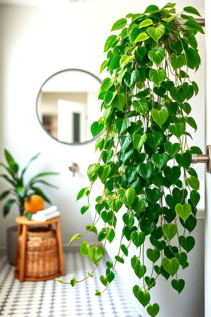 Subtly elegant, the Heartleaf Philodendron introduces a cascade of heart-shaped leaves that enliven your bathroom with natural movement. Its remarkable ability to flourish in low-light, high-humidity conditions makes it an ideal indoor plant for small spaces. This vine-like plant purifies the air while offering a lush, tropical feel that softens the room’s design. With minimal maintenance and robust growth, it invites you to create a serene and stylish green nook. Enhance your bathroom’s character with this vibrant philodendron, a living symbol of nature’s tender grace meeting practical beauty.