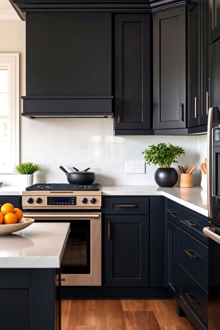 Smart space management becomes effortless when using black kitchen cabinets as the anchor of your design. Clever layouts and innovative storage ideas maximize every square inch, ensuring the space is both efficient and aesthetically appealing. The solid, dark backdrop of the cabinetry camouflages clutter while highlighting organized storage areas and modern design components. This method encourages thoughtful planning and utilization of space, merging functionality with stylish sophistication. The result is a streamlined kitchen that supports the demands of contemporary cooking while exuding a refined, clean, and innovative atmosphere.