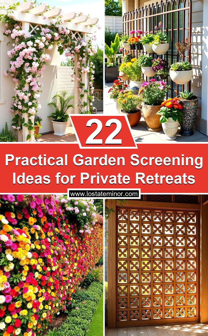 Exploring garden screening ideas can transform your outdoor space into a private, serene haven while adding visual interest and structure. With 22 Garden Screening Ideas, you’ll find inspiration to embrace natural elements, contemporary designs, and creative layouts—all tailored to suit various styles and budgets. Every idea here brings practical benefits, from improved privacy and wind protection to enhanced curb appeal and environmental friendliness. Let your imagination flourish as you discover ways to incorporate artistic design, living screens, and sustainable practices into your garden, inviting you to explore the endless possibilities of these garden screening ideas.