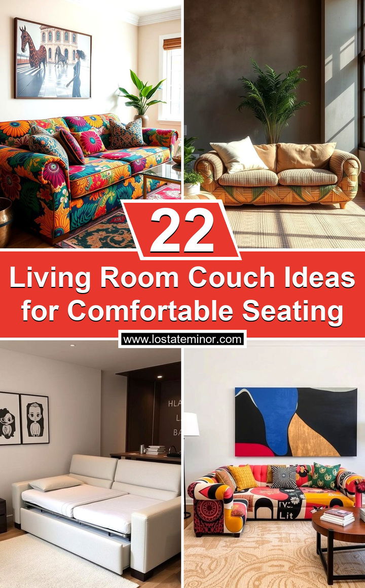 Consider the allure of a vibrant printed fabric couch to enliven your living area with bold personality and energy. This idea emphasizes dynamic patterns and rich colors that serve as the focal point of your decor. The playful design invites an adventurous spirit while ensuring comfort with well-cushioned seating. It pairs beautifully with both modern and eclectic styles, adding visual interest and texture to any room. Enjoy an artistic expression that not only symbolizes uniqueness but also transforms your living room into an inspiring and lively retreat for everyday gatherings.