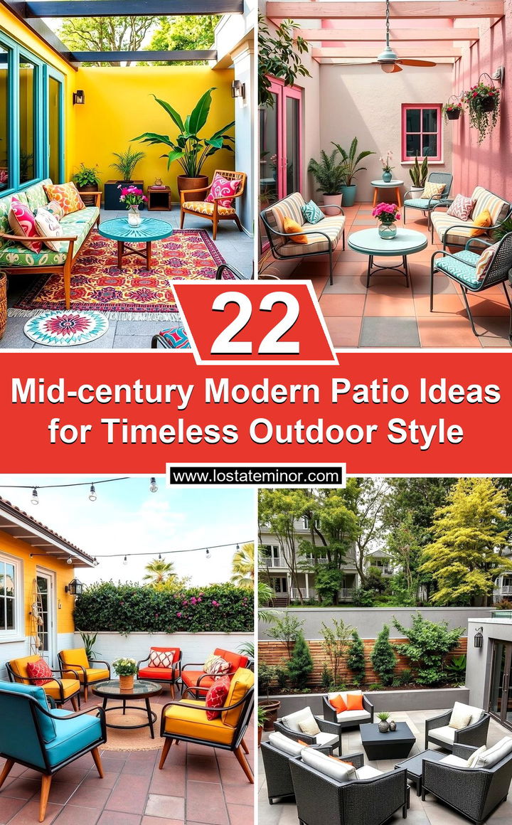 Mid-century modern patio ideas showcase an inspiring mix of retro charm, functional design, and timeless aesthetics that elevate your outdoor living experience. Each idea emphasizes clean lines, natural materials, and thoughtful details essential for creating a space that is both stylish and inviting. From minimalist layouts to creative outdoor kitchens, the collection of ideas encourages you to experiment with form and function while celebrating design heritage. Embrace these innovative approaches and transform your patio into a vibrant, serene retreat that reflects your unique taste and love for mid-century modern design.