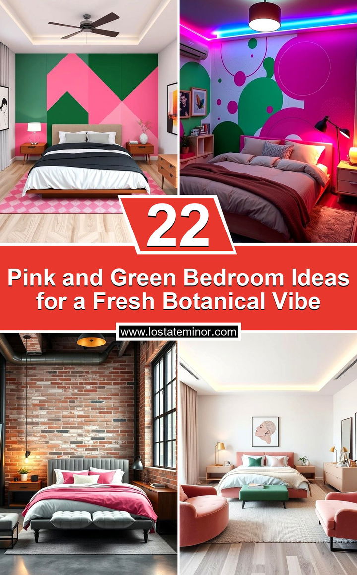 A striking pink accent wall paired with delicate green decor immediately transforms a room into a lively retreat. This idea highlights the power of color contrast by creating an eye-catching backdrop that works harmoniously with green elements. It encourages a blend of energy and calm, providing a perfect balance between vibrancy and natural appeal. Consider using textured wallpaper or a painted mural to add depth. Practical advice includes pairing the wall with neutral furniture to let the colors pop while maintaining a modern and fresh bedroom design.