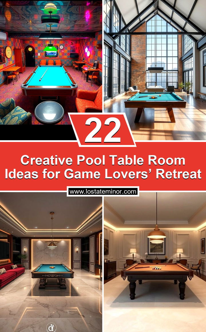 This collection of 22 Pool Table Room Ideas encapsulates a broad spectrum of design inspirations—from vintage charm and modern minimalism to eco-friendly approaches and luxurious entertainment zones. Each concept is crafted to spark creativity and functionality while tailoring a unique atmosphere that reflects individual tastes. Emphasizing thoughtful layouts, striking decor, and practical design elements, the ideas provide a rich foundation to transform any space into a vibrant recreational hub. Let these diverse inspirations guide you in creating a pool table room that is both engaging and a true extension of your style.