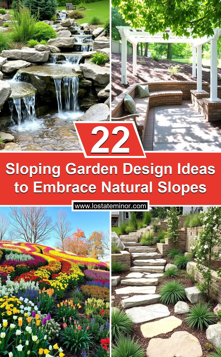 Imagine a flowing cascade that follows the natural rhythm of your sloping landscape, turning a simple garden into a tranquil retreat. Incorporating a cascading water feature adds a soothing auditory backdrop to your outdoor space while emphasizing the garden’s natural flow. Waterfalls or gently trickling streams can be carefully integrated between levels, inviting both birds and butterflies. Such features not only elevate the sensory experience but also serve practical purposes like irrigation and cooling. Their presence cultivates an atmosphere of serenity and artistic natural design, making your garden a delightful escape from everyday hustle.