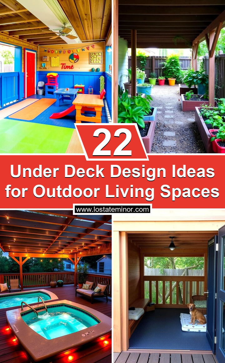 A shimmering transformation awaits beneath your deck when you create a cozy lounge. Imagine plush seating, warm lighting, and soft cushions that invite you to unwind after a long day. This idea enhances your outdoor living experience by providing a sheltered space ideal for relaxation or small gatherings. The practical design also shields you from unpredictable weather while creating an intimate ambiance. By integrating weatherproof fabrics and ambient lighting, you enjoy a comfortable retreat all year round, blending functionality with charm in a beautifully inviting setup.